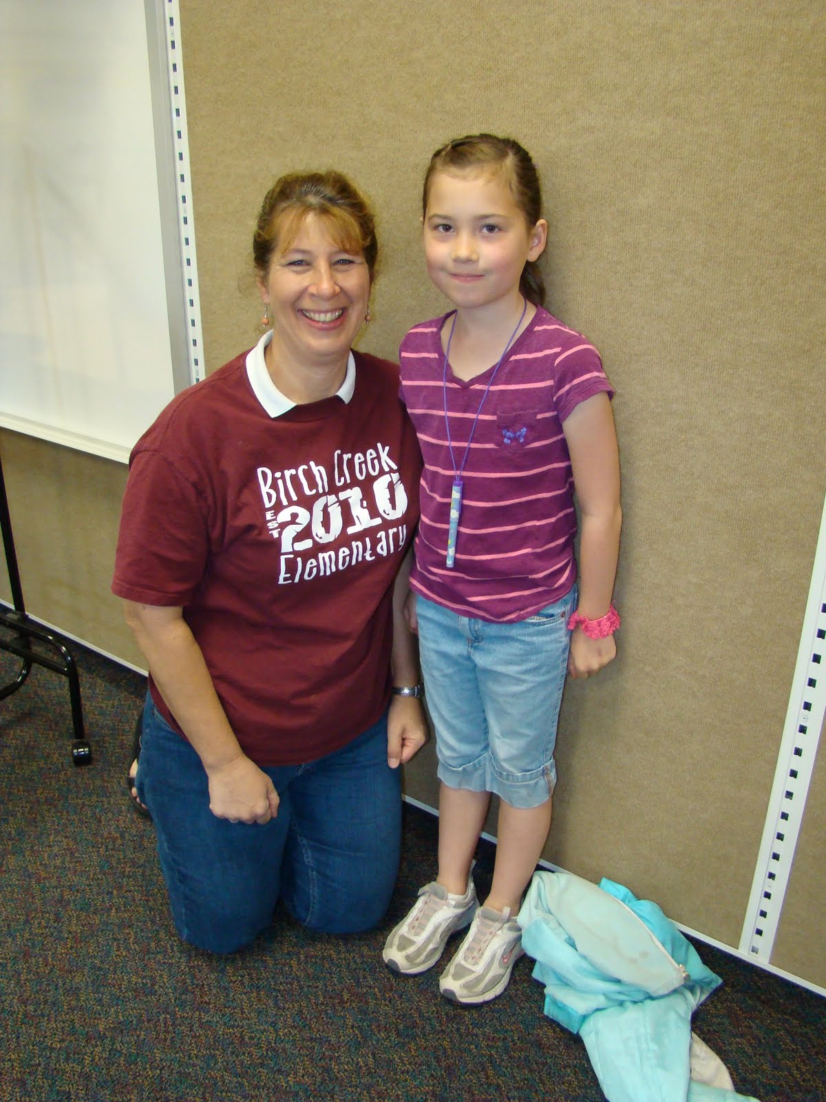Hannah had an “Author Fair” on Thursday, to show off all her work that she did throughout the year. It was fun to see her stories and journals. She’s so funny! (Christopher loved being there, too, because I’m sure he ate half the cookies that were there for the guests!) Some day I will scan in her work and post those, too. But, for now, enjoy this cute picture of Hannah standing by her desk taken by my phone because I forgot to bring my better camera.